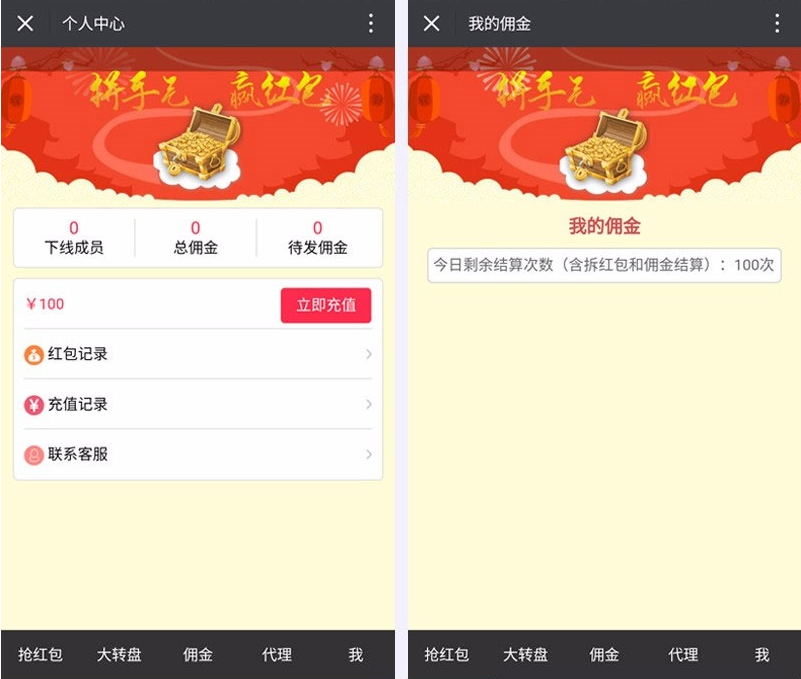 15. 支持双佣金模式,包括三级分销单局佣金和充值百分比佣金。
