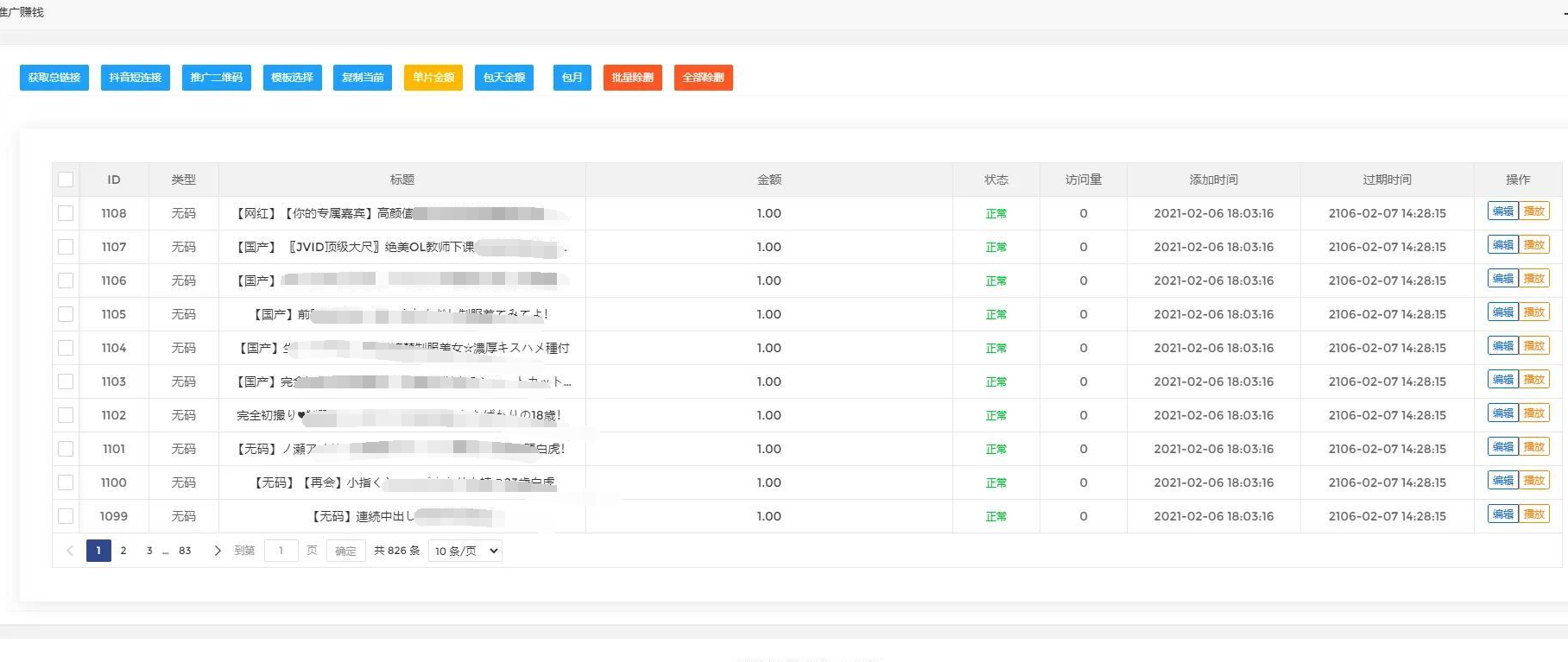 11. 一键生成总推广链接,每次生成的链接都不相同,以防止短链被墙。