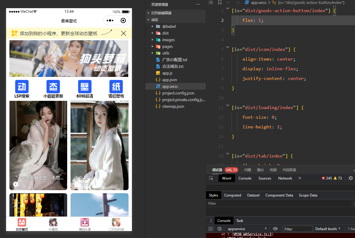 最美壁纸小程序源码全新修复版,带激励广告,近期进行了全面修复,修复后的程序包中包含了安全域名与广告id的配置说明。