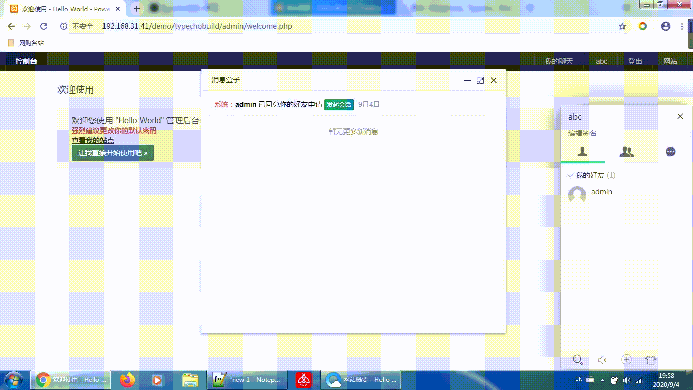即时聊天插件为typecho站长及用户提供即时聊天功能,前台环信即时聊天需要配合个人中心插件,暂不支持手机端。