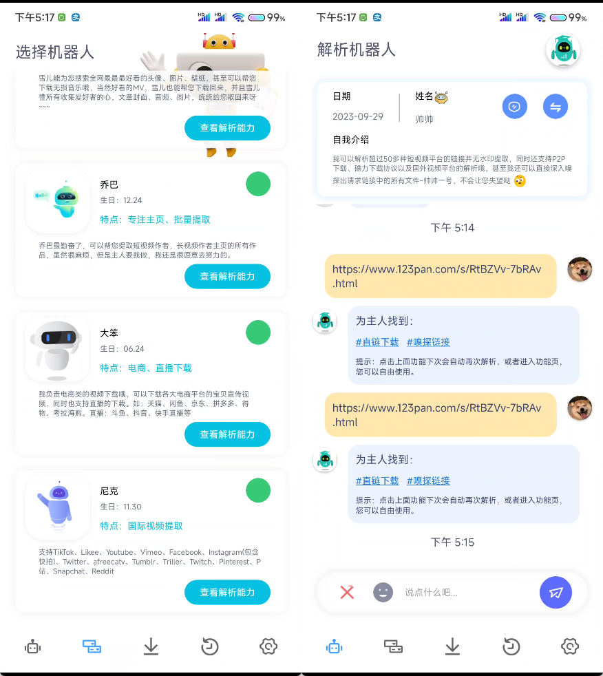 解析机器人是一款强大的工具,能够帮助用户解析超过50个平台的短视频,并提供无水印的视频提取功能。使用解析机器人,用户可以轻松获取想要的短视频内容,而无需担心水印等限制因素。您只需将目标视频链接输入到解析机器人中,它会迅速解析链接并提供可下载的无水印视频文件。解析机器人还提供网盘直链的解析服务,这意味着您可以直接从云端存储中提取文件,无需繁琐地经历多个步骤。不论您需要在社交媒体上分享精彩的短视频,还是用于个人欣赏或其他用途,解析机器人都能帮助您快速、便捷地获取所需的视频资源。尝试使用解析机器人,让您的短视频体验更加顺畅和无忧。