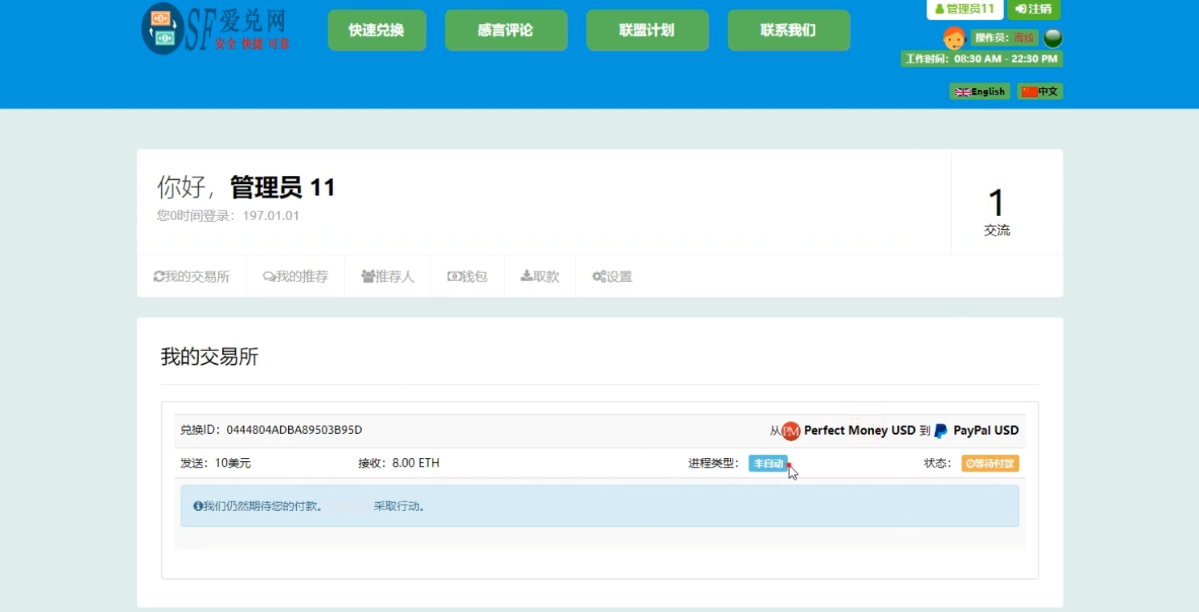 这个源码可以让您搭建一个功能齐全的网站,可以进行各种货币的兑换,包括USDT、人民币、完美货币等
