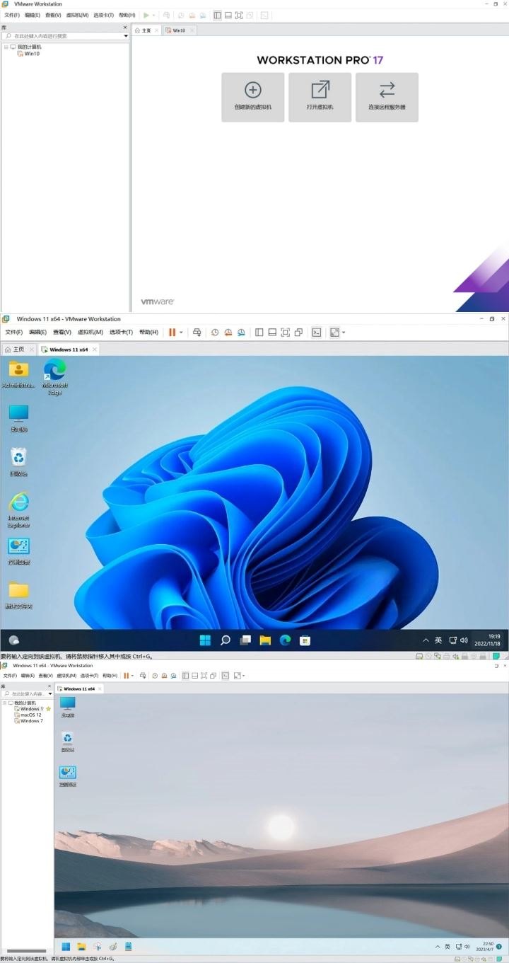 你可以在一个窗口中加载一个虚拟机,并在各虚拟机中任意切换,通过一个网络共享虚拟机,挂起和恢复虚拟机以及退出虚拟机,并且不会影响到其他的系统或者程序。