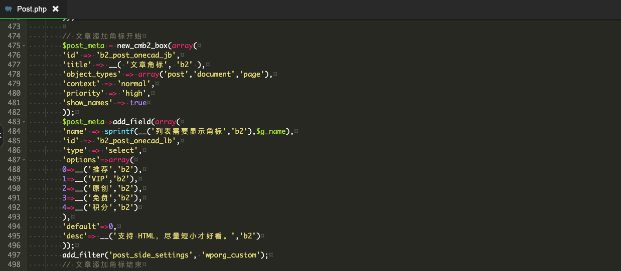 1.修改b2主题目录下 /b2/Modules/Settings/Post.php 文件,在$gg_meta = new_cmb2_box 之前添加:
