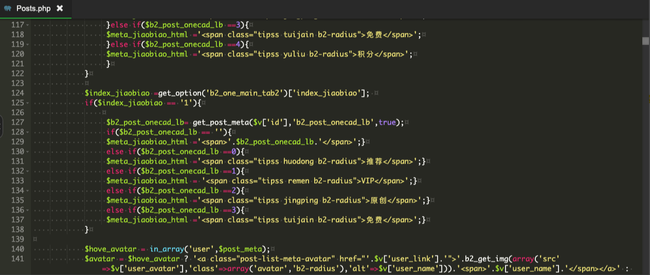 2.修改b2主题目录下 b2/Modules/Templates/Modules/Posts.php 文件,在第一个$hove_avatar前添加以下代码: