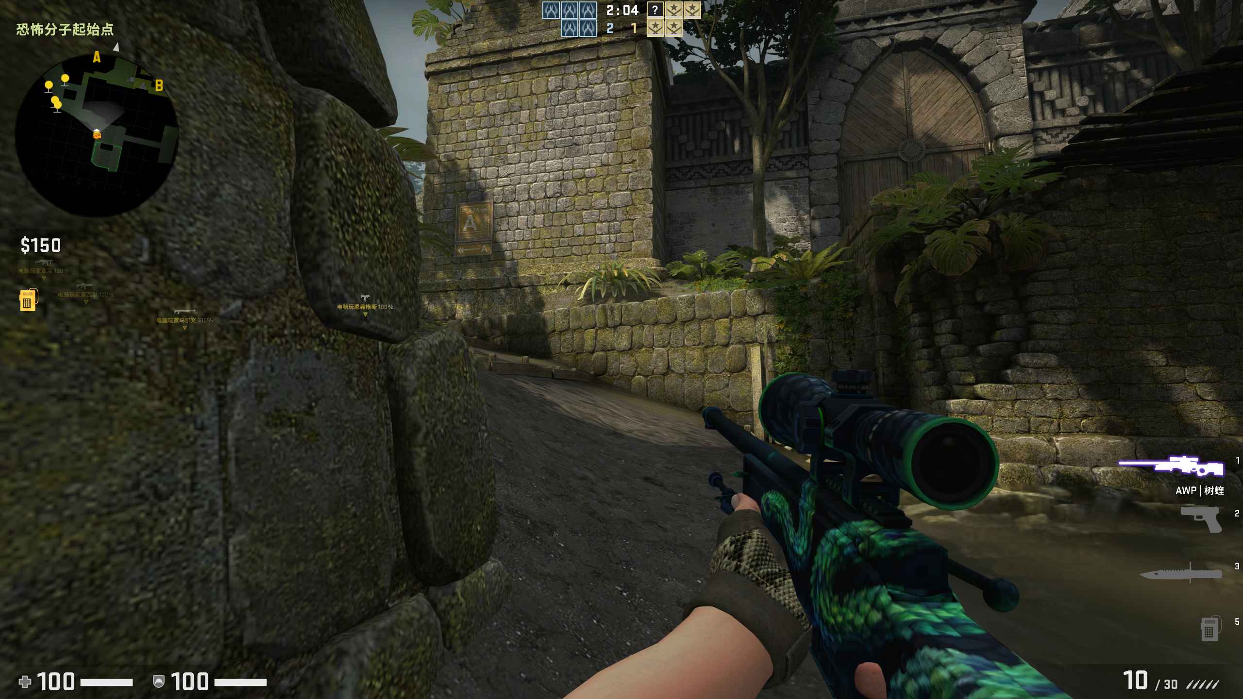 【游戏内开始游戏-机器人练习赛-选择地图进行游戏,武器皮肤都在物品栏自己设置喜欢的】