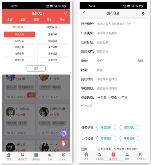 全新开发悬赏任务系统,功能齐全,包含接任务,发布任务,店铺关注,置顶推荐,排行榜,红包大厅,红包抽奖,任务步骤,举报维权,vip会员特权等众多功能,已有客户上线运营,源码内附有教程,亲测可用。