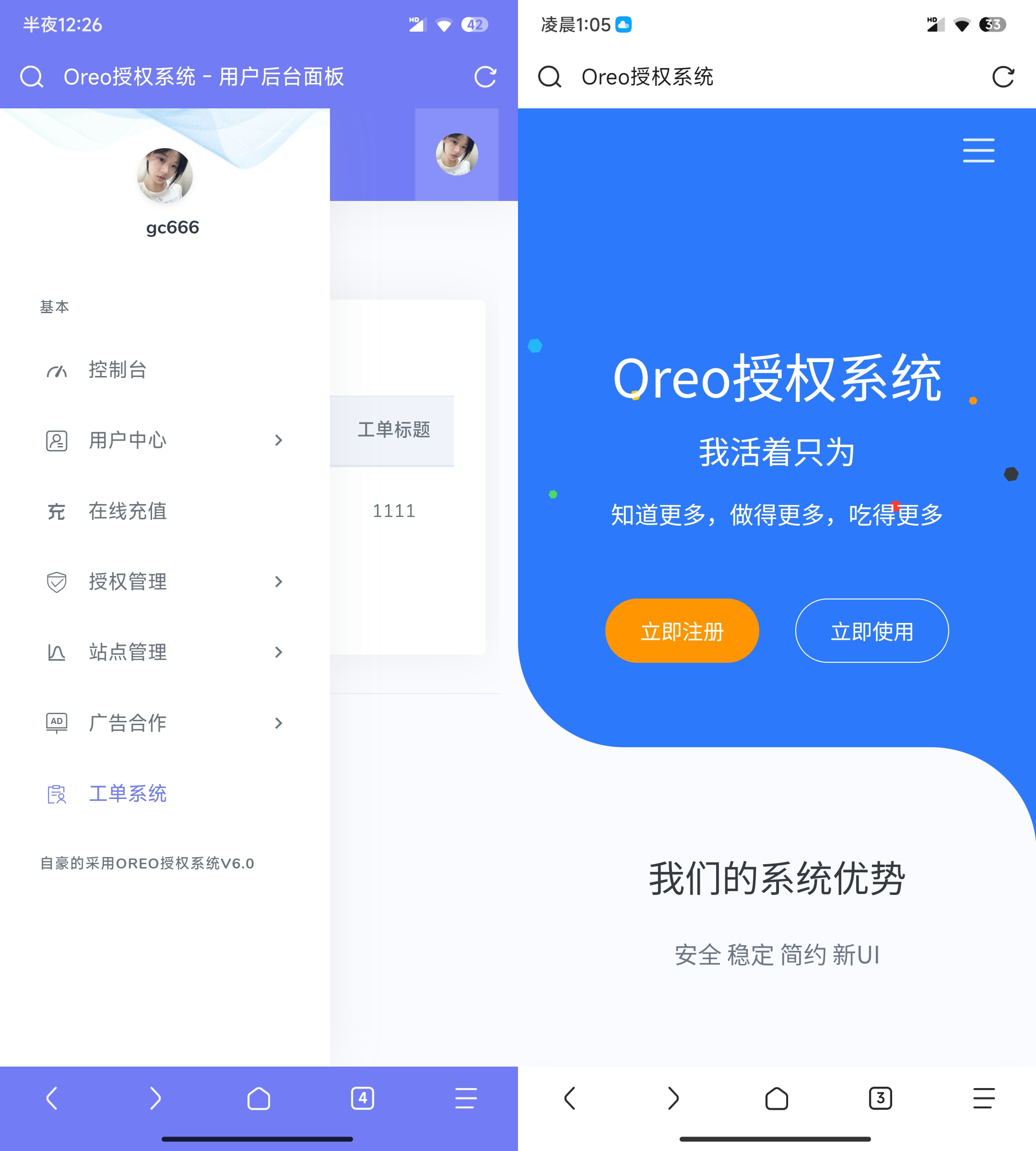 Oreo授权系统几乎所有的程序都能整合使用,包括您的app和计算机程序,支持多程序授权、在线支付、权限分配、内测用户、在线升级、商业广告、工单系统、盗版管理、自定义用户等级、自定义授权提示、授权程序、到期时间设置、IP验证、版本验证、IP域名双重验证、单域名验证、泛域名验证、余额卡密、授权卡密、授权过户、上下级关系、远程静态资源、多用户注册、在线授权、权限升级、补差价升级等功能.