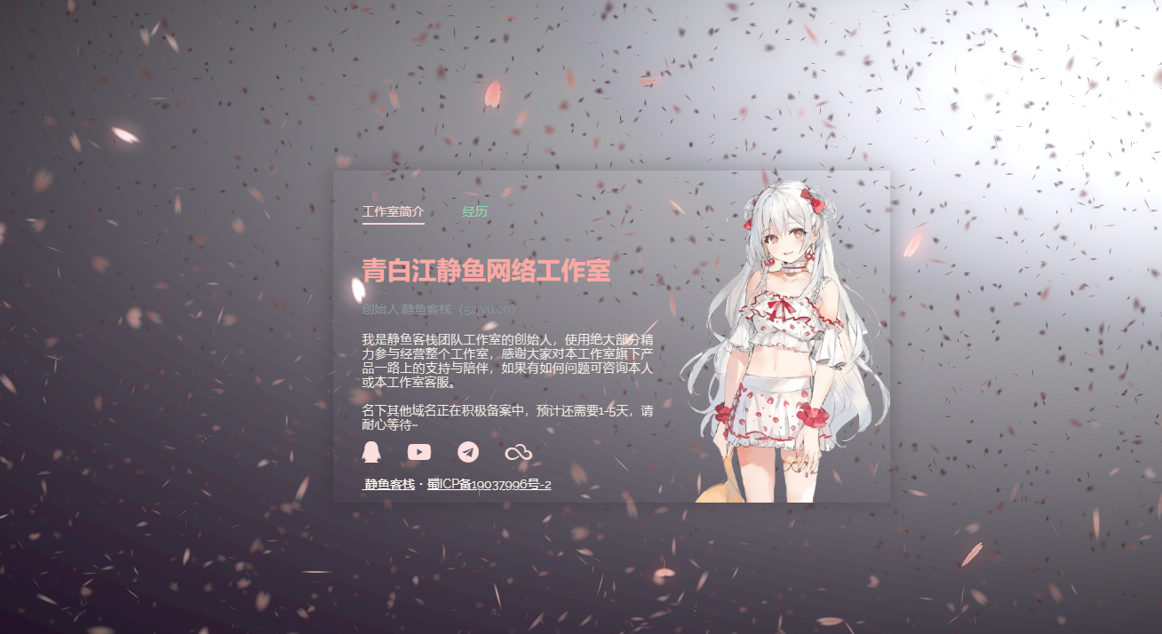 经过自己二次更改美化后的好看动态落花背景个人工作室介绍html模板 看着不错,哈哈,有需要的自己拿去集成网站使用,或者单独做个个人导航页也可以。 资源下载此资源下载价格为2U点点击检测网盘有效后购买,VIP免费立即升级客服QQ:305582964 联系邮箱:305582964@qq.com