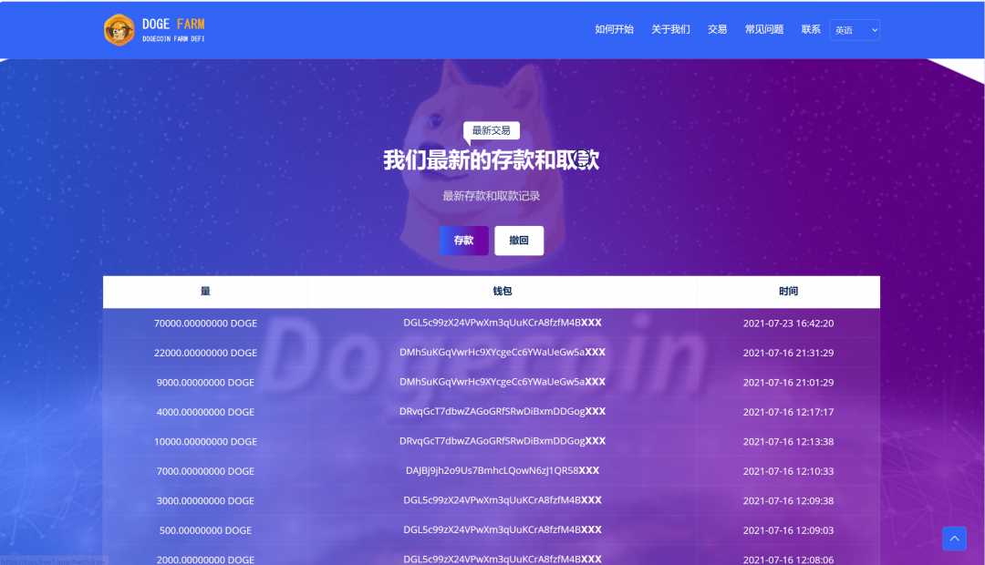 独家狗狗币DeFi矿场/DeFi区块链/流动性矿池/存币生息 全新PHP系统开发,支持添加多语言,默认是英文版,截图是浏览器自动翻译 独家狗狗币DeFi农场,只需要输入钱包地址即可存币生息 之前的,这个东西站长也没研究过,你们拿着玩吧 资源下载此资源下载价格为6.6U点点击检测网盘有效后购买,VIP免费立即升级客服QQ:305582964 联系邮箱:305582964@qq.com