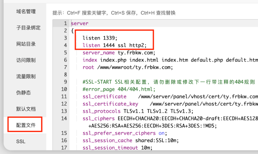 在宝塔后台添加网站域名时候,域名后面带上一个1339端口