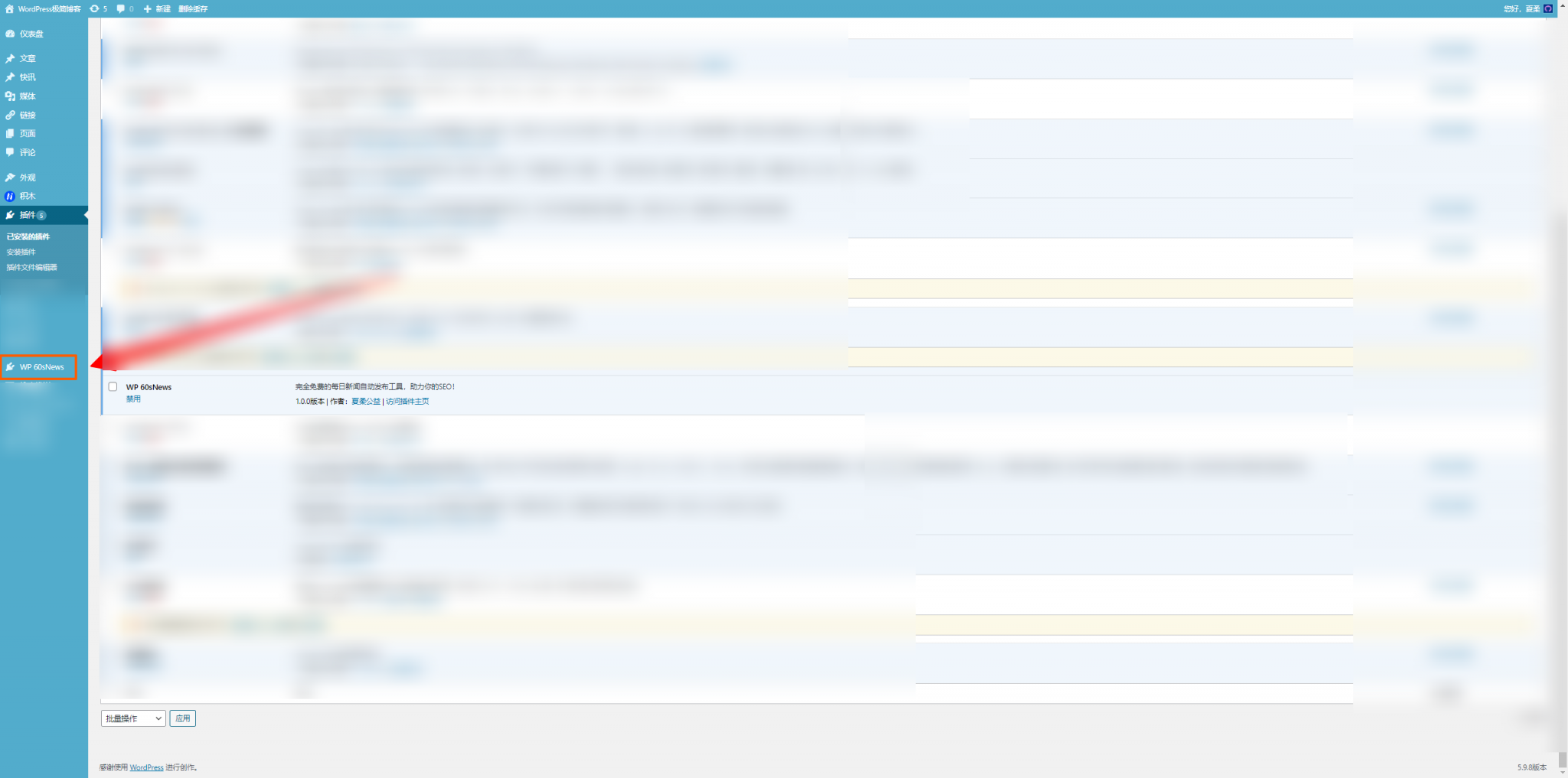 首先将插件包安装到WP插件目录并启用,启用后会在菜单栏里出现一个:WP 60sNews,如图所示: