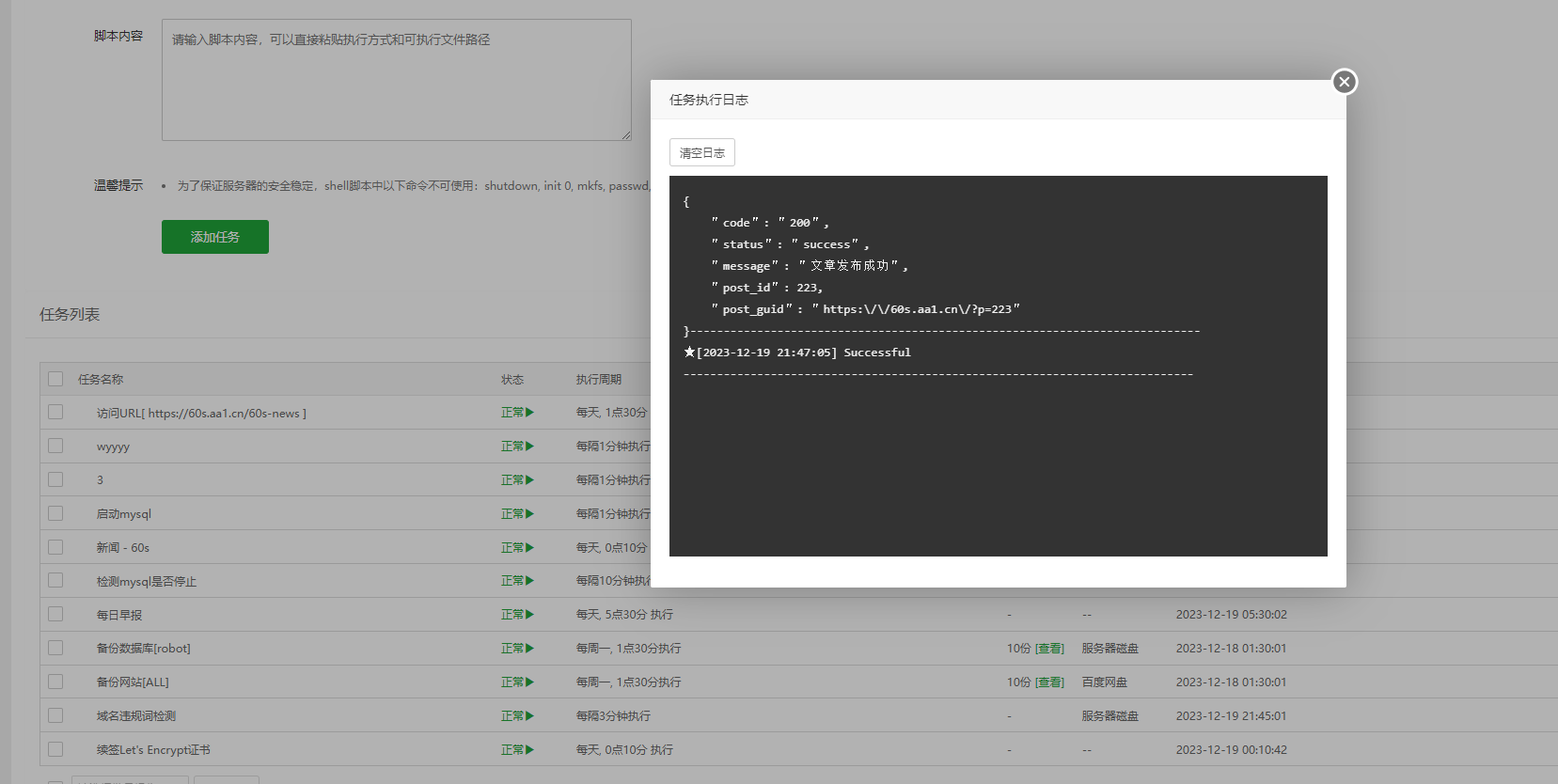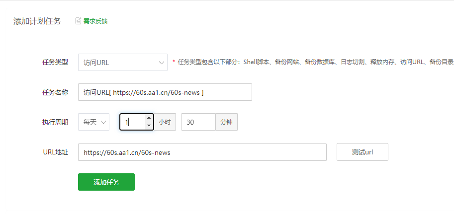 - 第三步:请您前往 宝塔 – 计划任务 – 添加计划任务,添加的url已经在你的页面显示了;