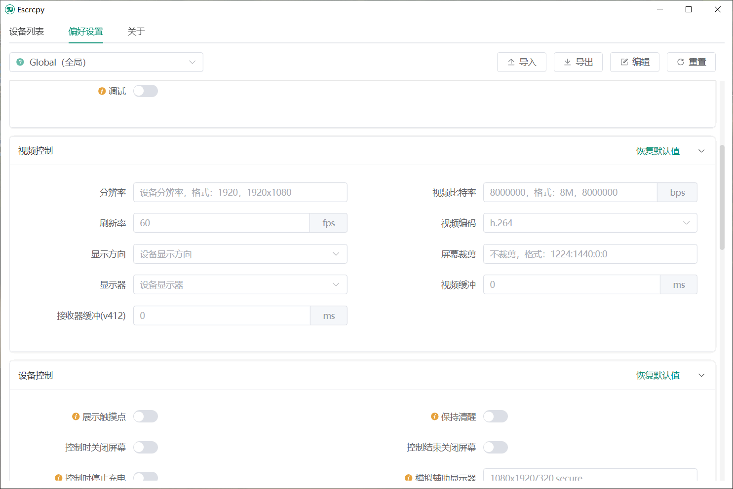 定制化:支持对多个设备偏好进行独立配置,并且能够添加备注以及导入导出所有配置的功能