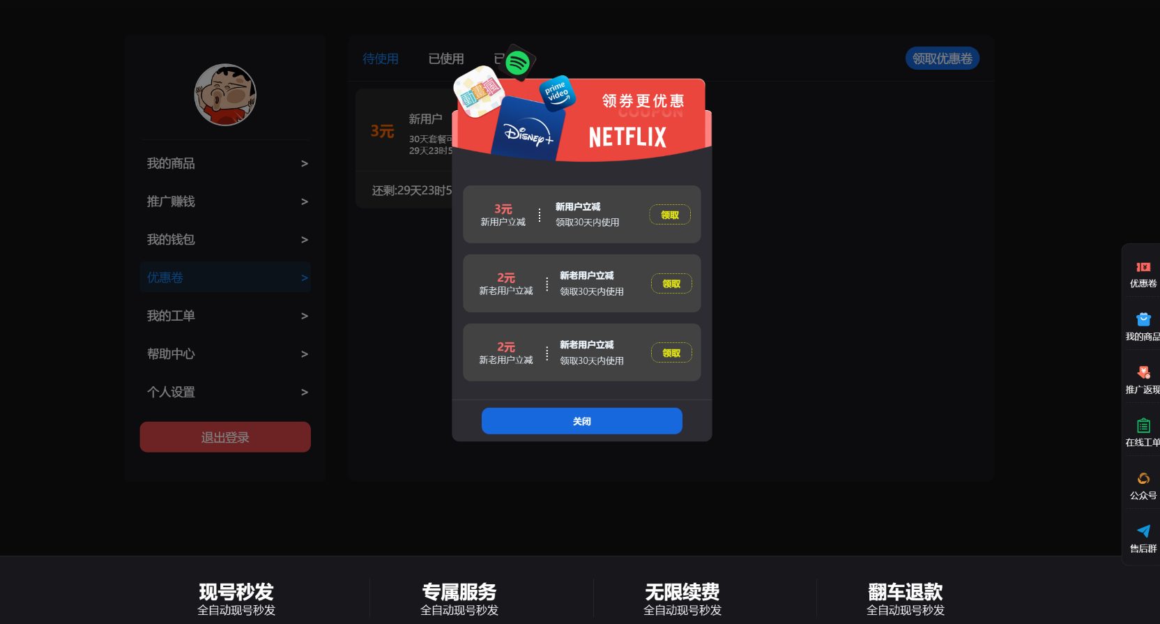 站长可在后台添加不同类型的优惠卷,并发布公告。