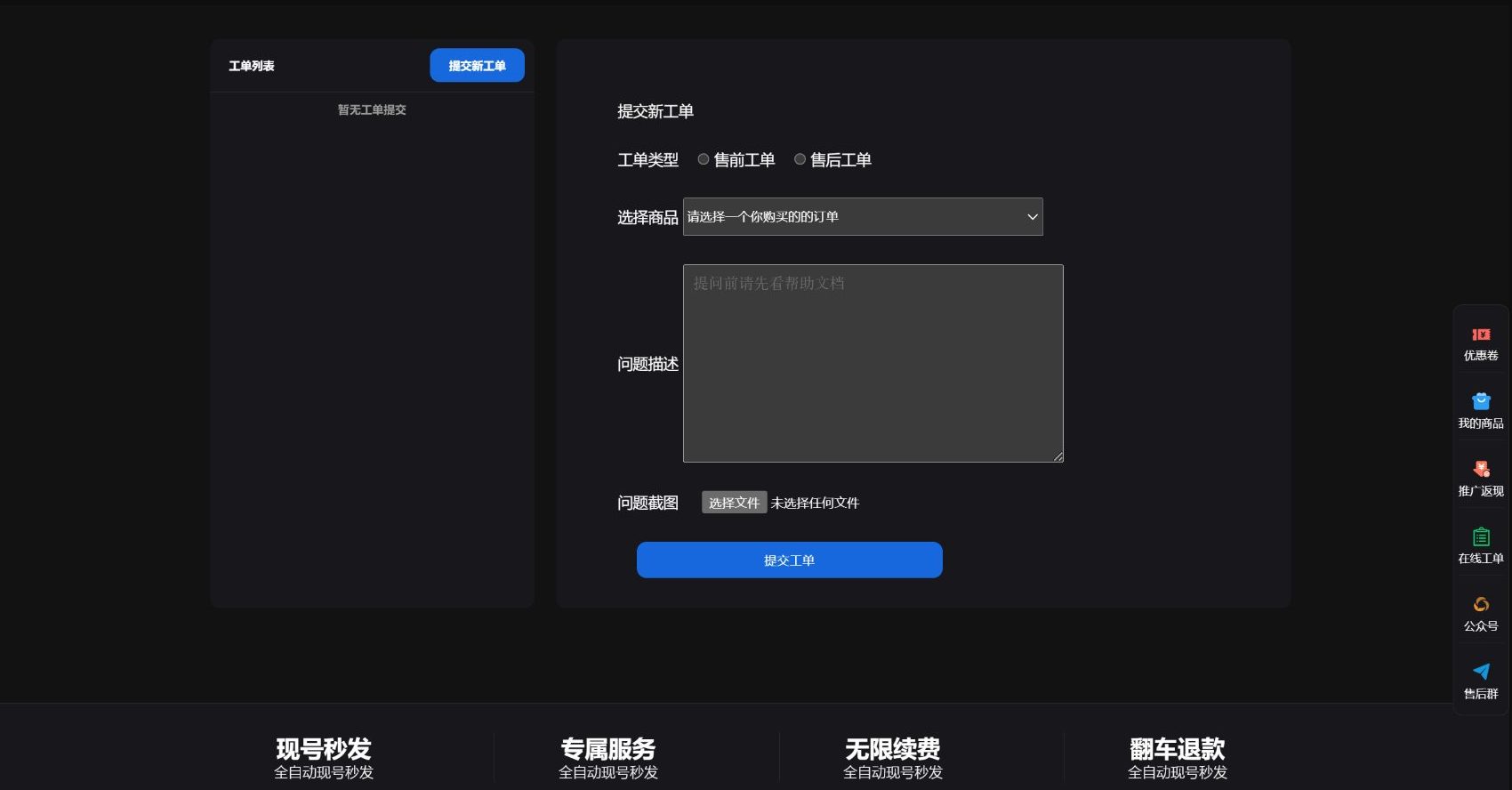 还添加了邀请返利功能,提供用户提现功能,以及工单系统。前台UI适配移动端和PC端,支持邮箱登录和注册模式。