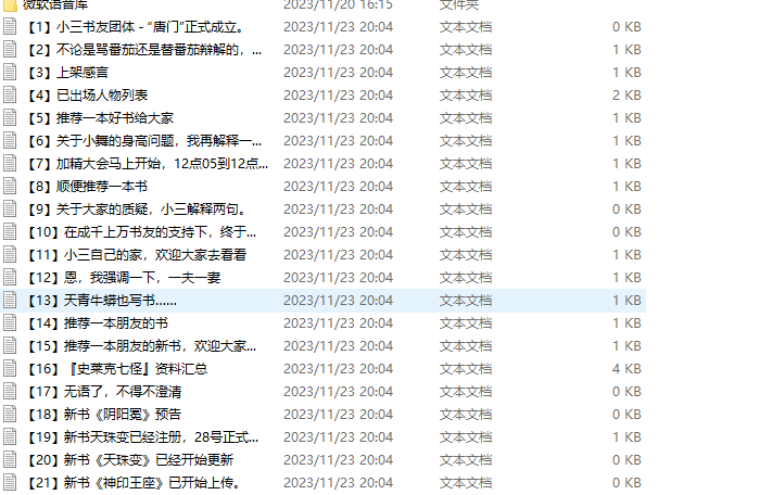 在选择好书籍的保存位置后,点下载,会自动以txt文件格式将小说按照章节分别保存到本地。