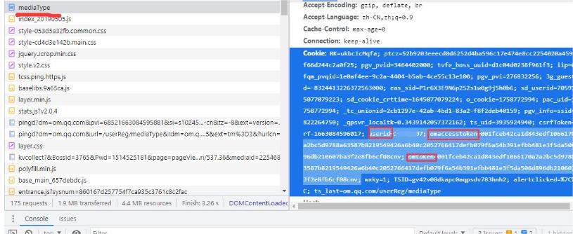 token需要自己登录腾讯开放平台,然后登录一个账号刷新网页F12查看