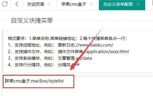 2.添加苹果cms盒子快捷菜单:苹果cms盒子,macBox/stylelist(参考下图)