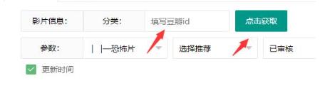 影视信息采集:2.打开信息采集,从列表中编辑视频,第一行内容填写豆瓣id点击获取即可2.可打开信息采集点击添加填写豆瓣id点击获取