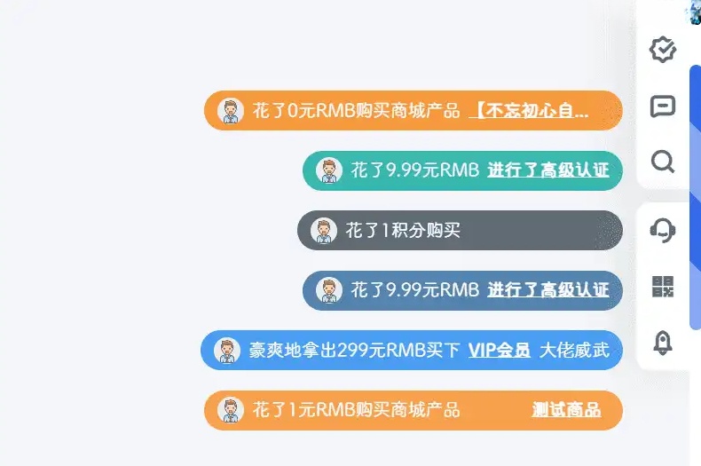 B2主题右下角用户购买记录提示弹幕插件是一款功能丰富的WordPress插件,旨在为网站管理员提供一种简单而有效的方式来展示用户购买记录。通过该插件,网站管理员可以轻松实现购买隐藏内容付费文件弹幕、购买商城物品信息弹幕、打赏信息弹幕、认证信息弹幕、充值信息弹幕、兑换积分弹幕、购买会员弹幕等功能。