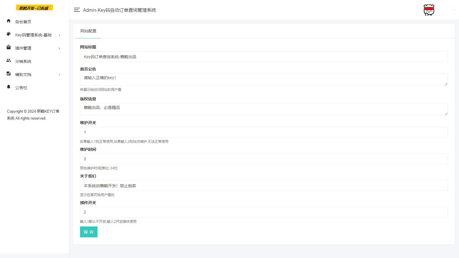 汐鹤Key码查询是一个提供特殊虚拟物品销售的商家使用的系统,同时也提供网站授权功能。该系统还包含插件功能,特别是网站授权功能在开发领域仍属于较少涉及的内容。需要说明的是,系统中的代码还有许多优化的空间。
