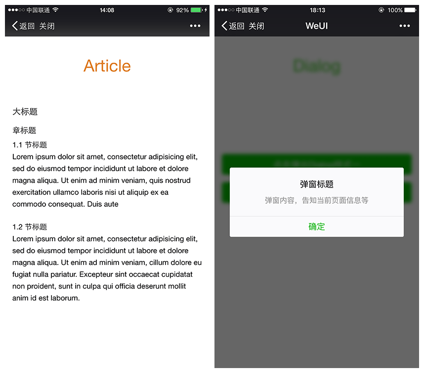 WeUI是由微信官方设计团队专为微信移动Web应用设计的UI库。