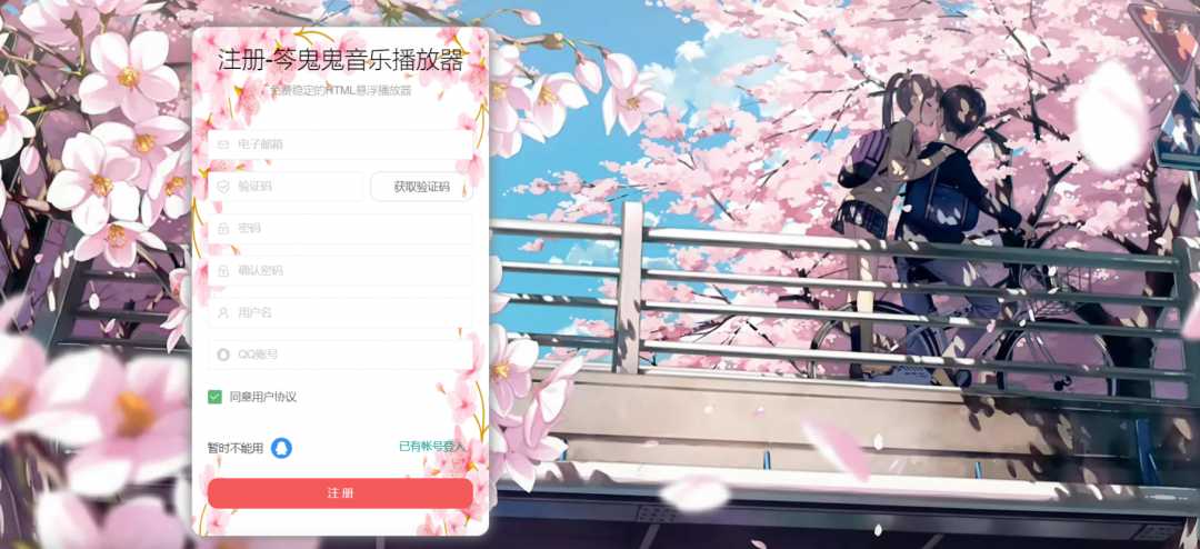 梨花带雨播放器基于thinkphp6开发的XPlayerHTML5网页播放器前台控制面板,支持多音乐平台音乐解析。二开内容:修复播放器接口问题,把接口本地化,但是集成外链播放器接口就不本地化了,我花钱找人写的理解下,修复外链播放器失败问题,替换掉原来的接口,扒梨花的前端UI,美化登录页面。