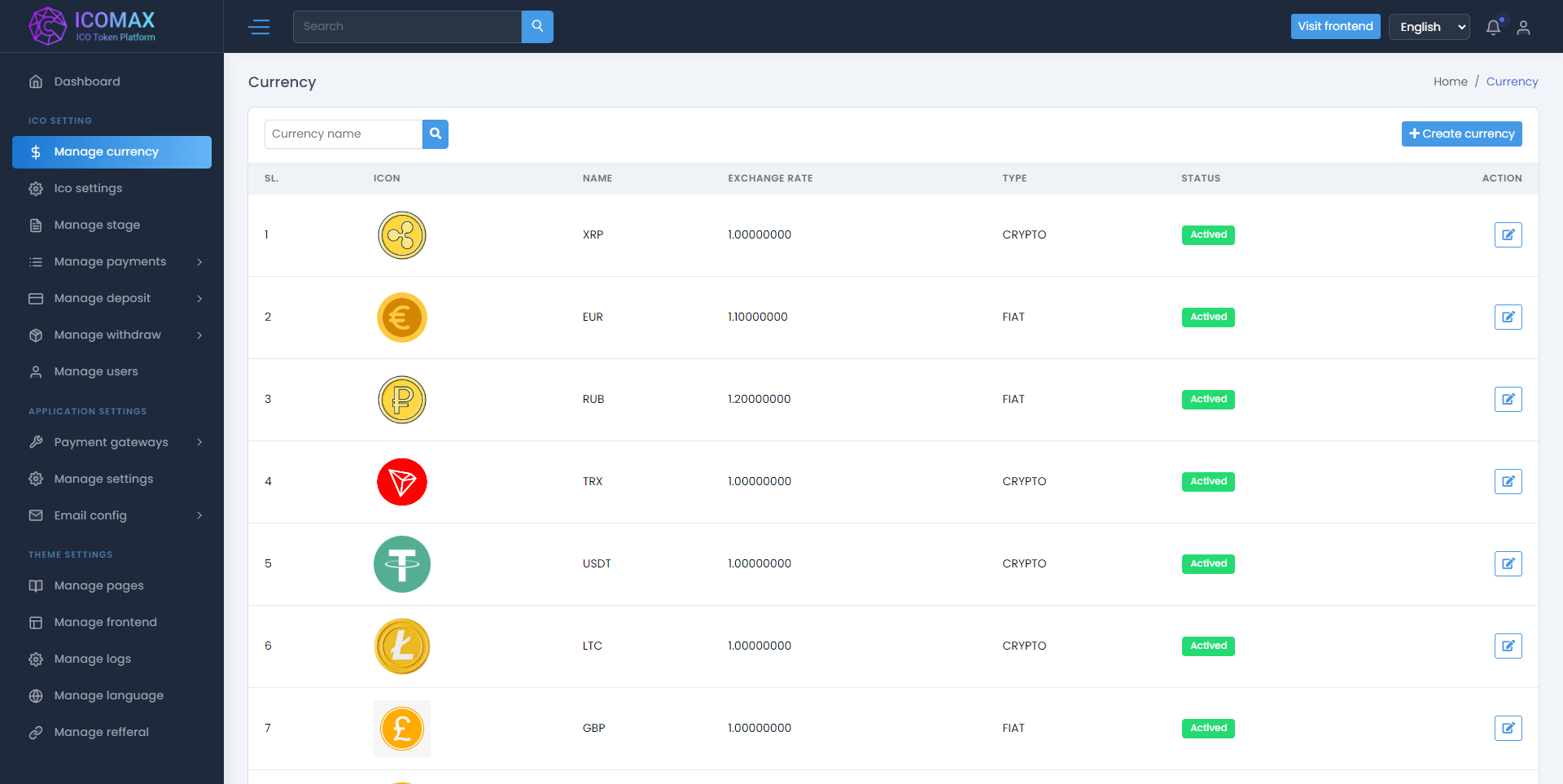 区块链虚拟币代币销售拍卖平台,加密货币全方位数字资产交易平台。是一款功能强大的数字资产交易平台,为用户提供了安全、高效的交易环境。该平台基于最新的 Laravel 8.x 框架开发,具有易于安装、多语言支持、在线/离线支付网关、KYC、电子邮件和短信验证等特色功能。此外,ICOMAX 还支持多种支付网关,包括 Razorpay、Coinpayment、Mollie Payment、NowPayments、PayStack、Flutterwave 等。用户可以使用法定货币和多种加密货币进行阶段性销售,并享受拍卖和聊天等功能。无论是个人用户还是企业机构,ICOMAX 都能满足其数字资产交易的需求。