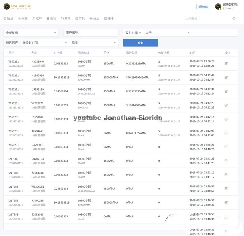 情况二:假如A推广了B,B推广了C,那么C再每次收矿的时候,AB都能获取到部分比例的利润