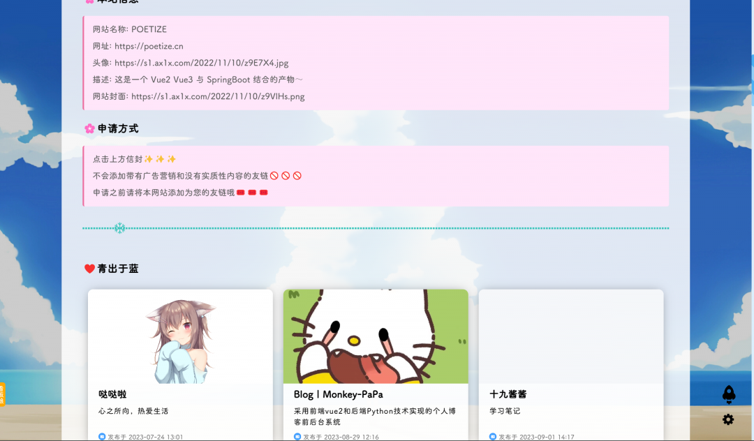 博客系统:具有文章,表白墙,图片墙,收藏夹,乐曲,视频播放,留言,友链,时间线,后台管理等功能。