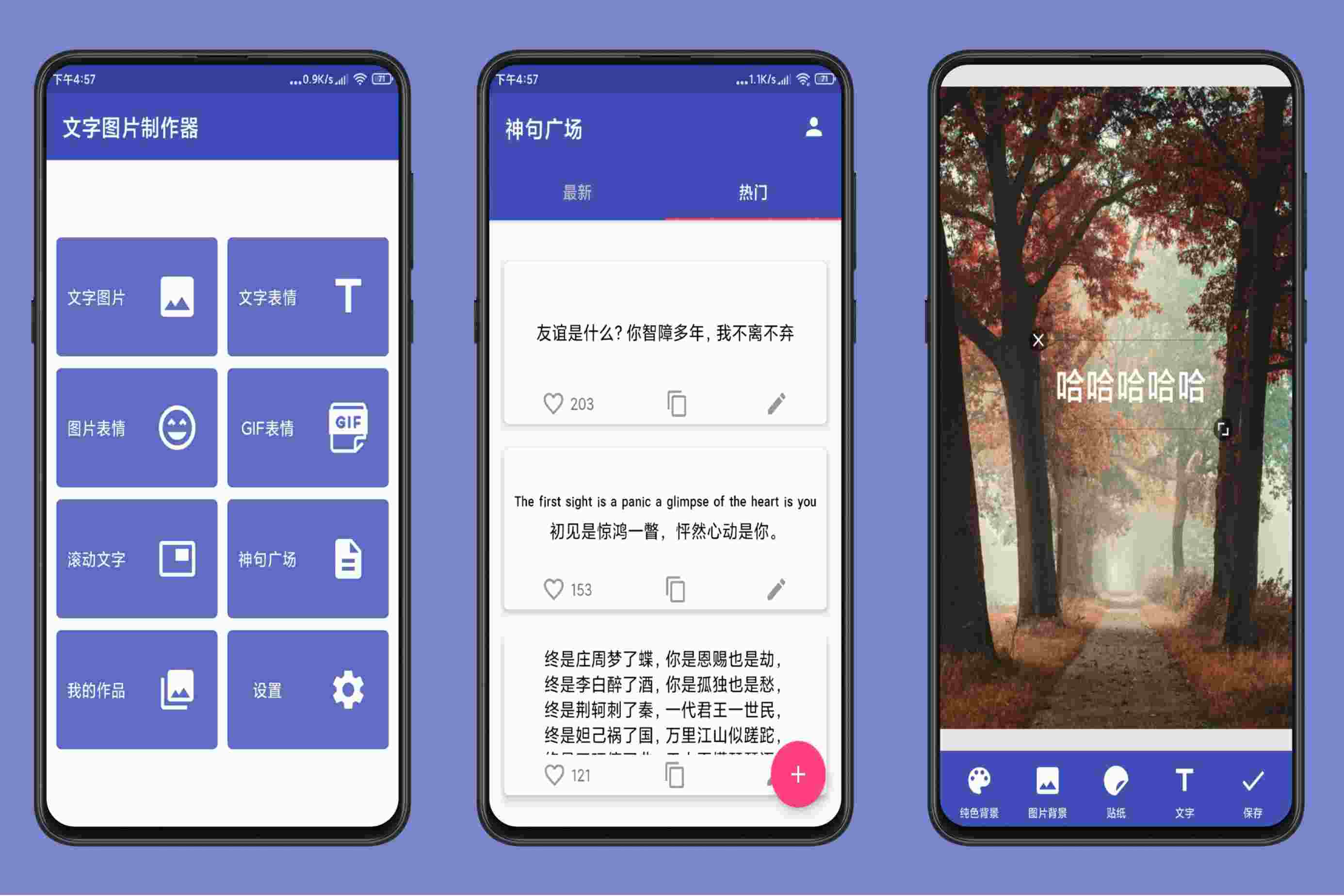 一款文字图制作神器,拥有海量图制作素材,轻松制作封面、海报、文字图等内容,使用简单,功能全面,让文字图制作更轻松,去除已知广告!
