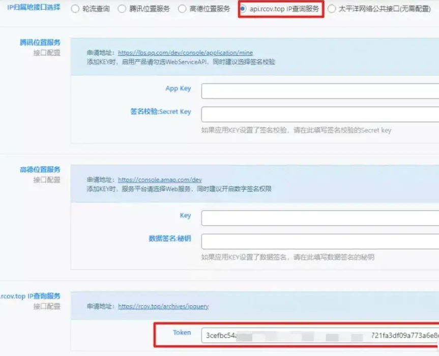 替换完毕以上文件后,在子比的后台即可看到选项,选择之后需要在下方配置您的Token,配置完毕后,相信您已经可以使用我们的IP查询服务了!