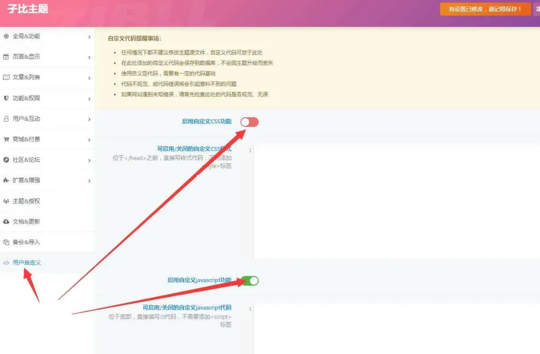 这样就可以开启和关闭自定义CSS和javascript代码了。