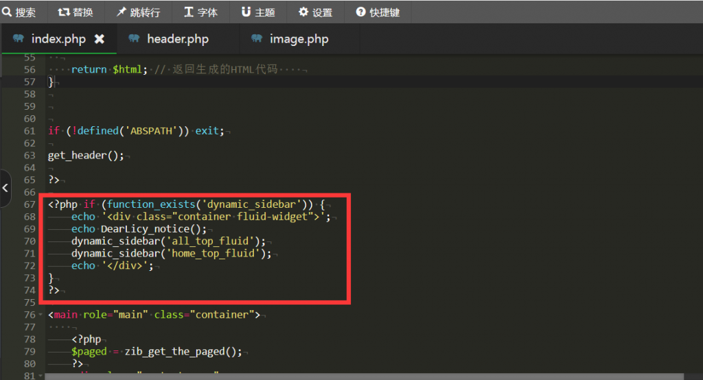 比如我这儿里就是将 echo DearLicy_notice(); 代码放在加载顶部代码(fluid-widget)的元素框架中。