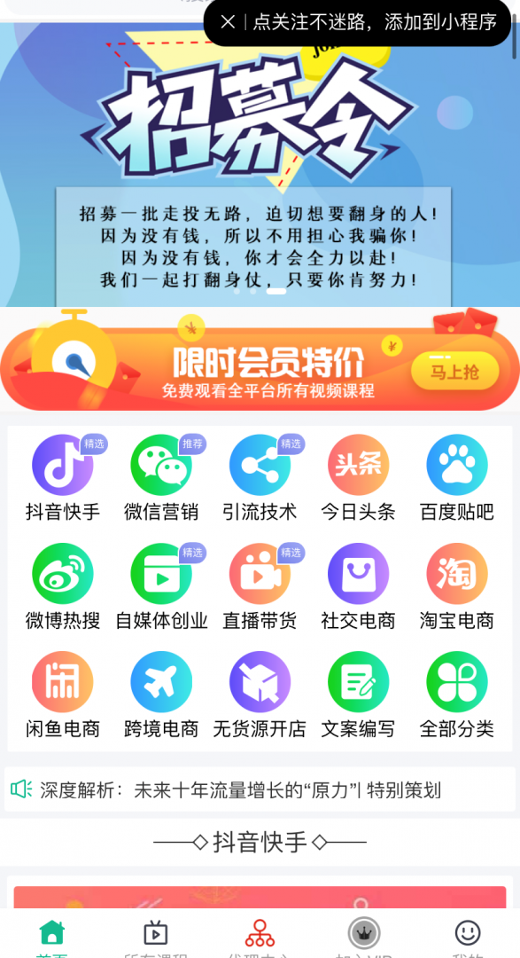 知识付费阅读小程序,带有代理,分销,课程资源更新等等。