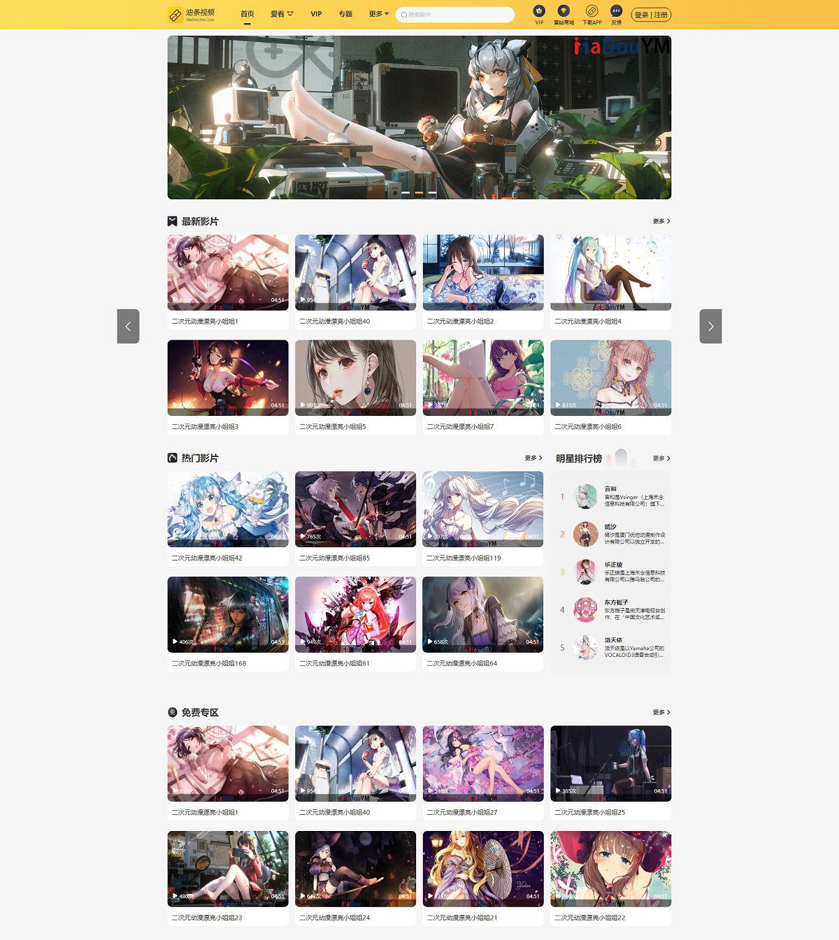 2. 视频,演员,专题,收藏,会员系统模块齐全,支持子分类,不再只显示单一的主分类