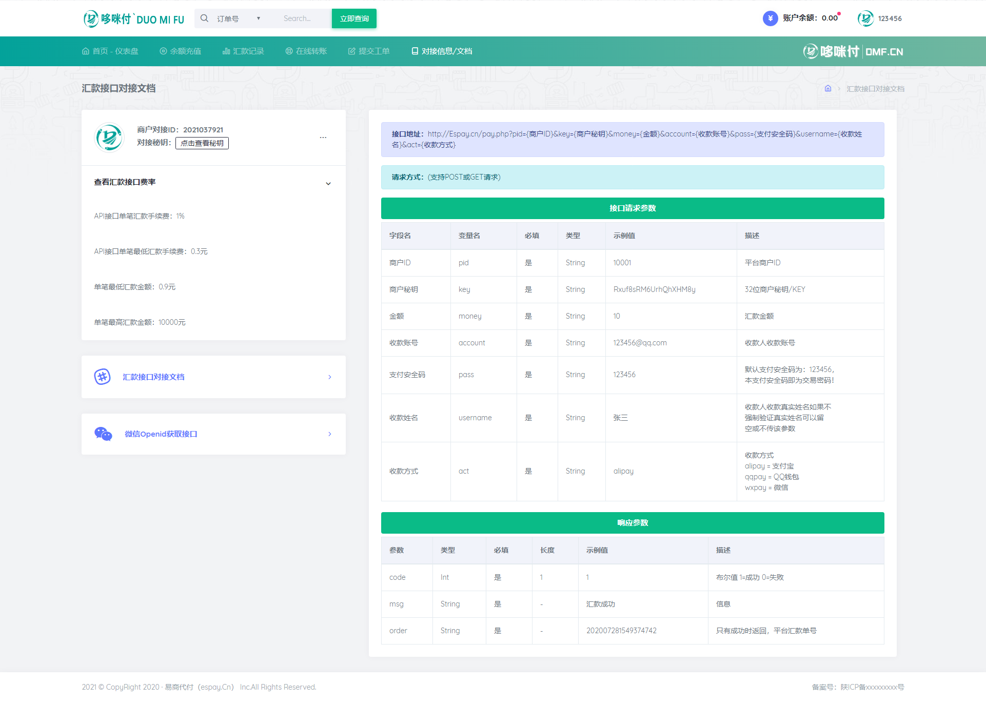 平台充值收款已对接易商付(三方进件通道):Www.Espay.Cn 可进件自己的商户进行使用下户简单!