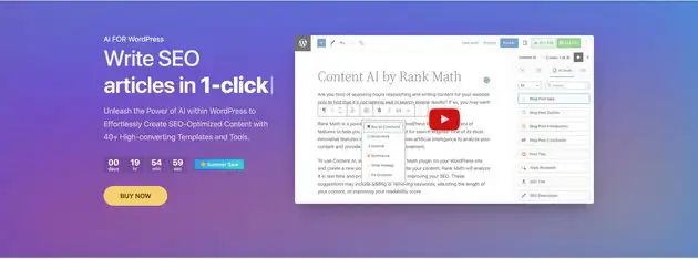 Rank Math SEO是一个全面的SEO插件,它整合了AI技术来帮助优化您网站内容的搜索引擎排名。