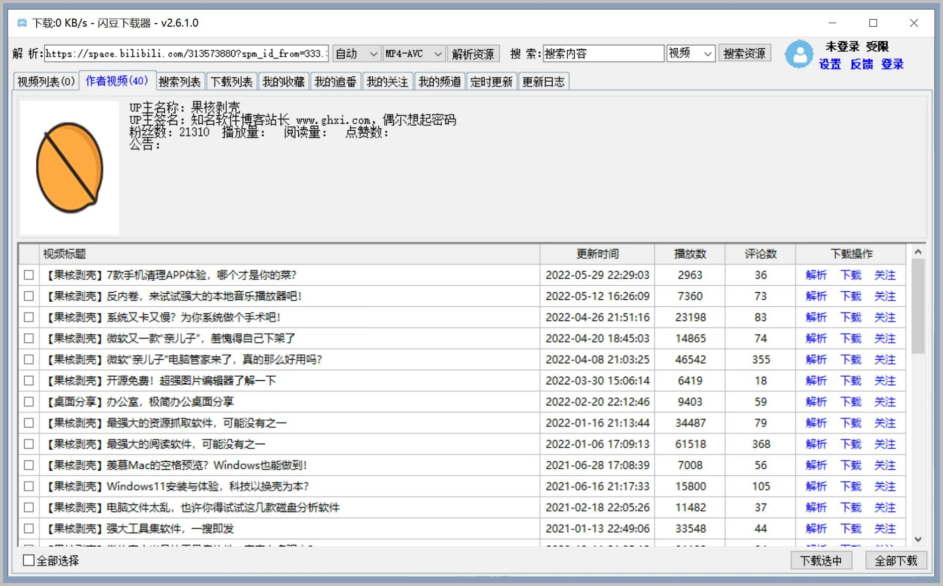 闪豆视频下载器是一款网络视频下载工具,主要支持下载bilibili的视频,可以看到up主的视频列表、我的收藏、我的追番、他的频道等等,一目了然找到你想要的资源。同时,软件还具备4K、1080p60、720p60、1080+、720p、480p、360p画质的视频下载,无论你想要哪种画质,在这里都能满足你。