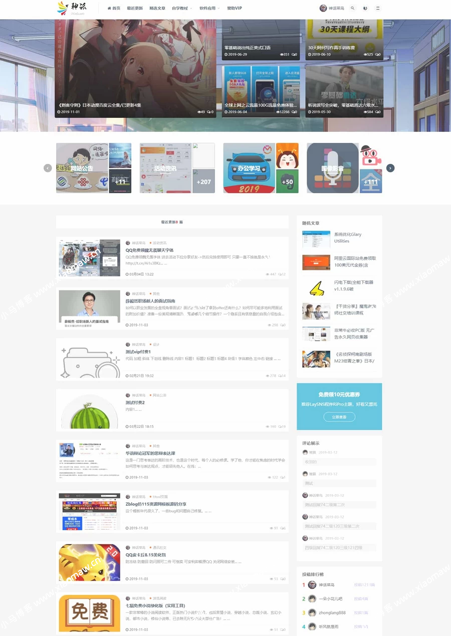 LavSNS模板仿RiPro日主题素材源码资源下载响应式CMS模板。该主题是网上泛滥的RiPro主题仿制而成的lavsns模板