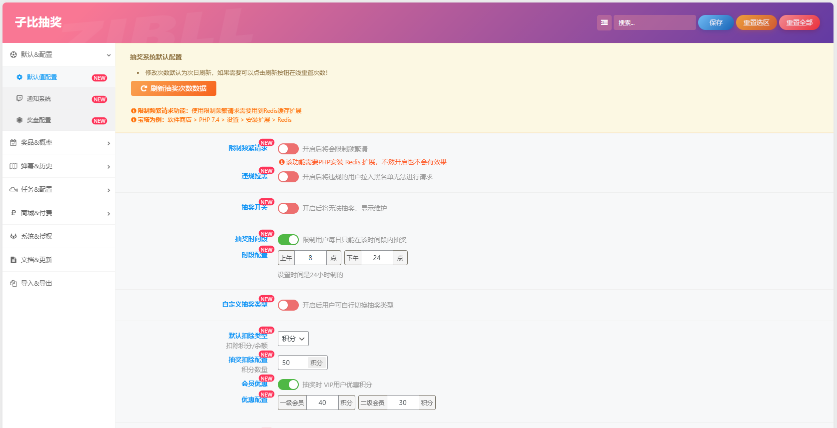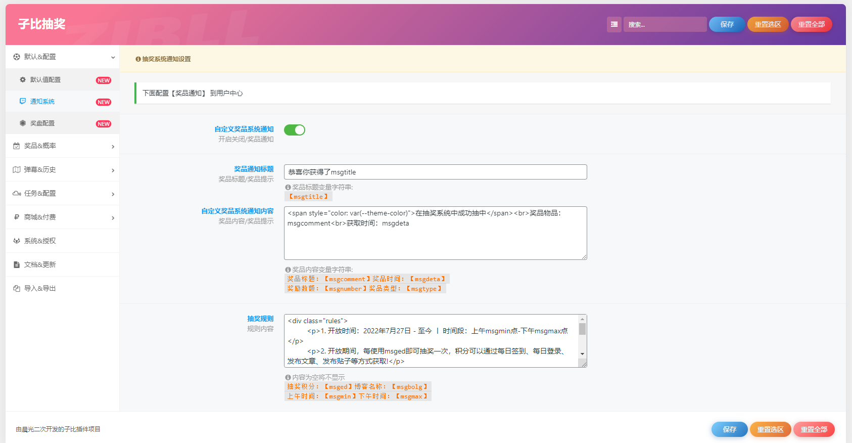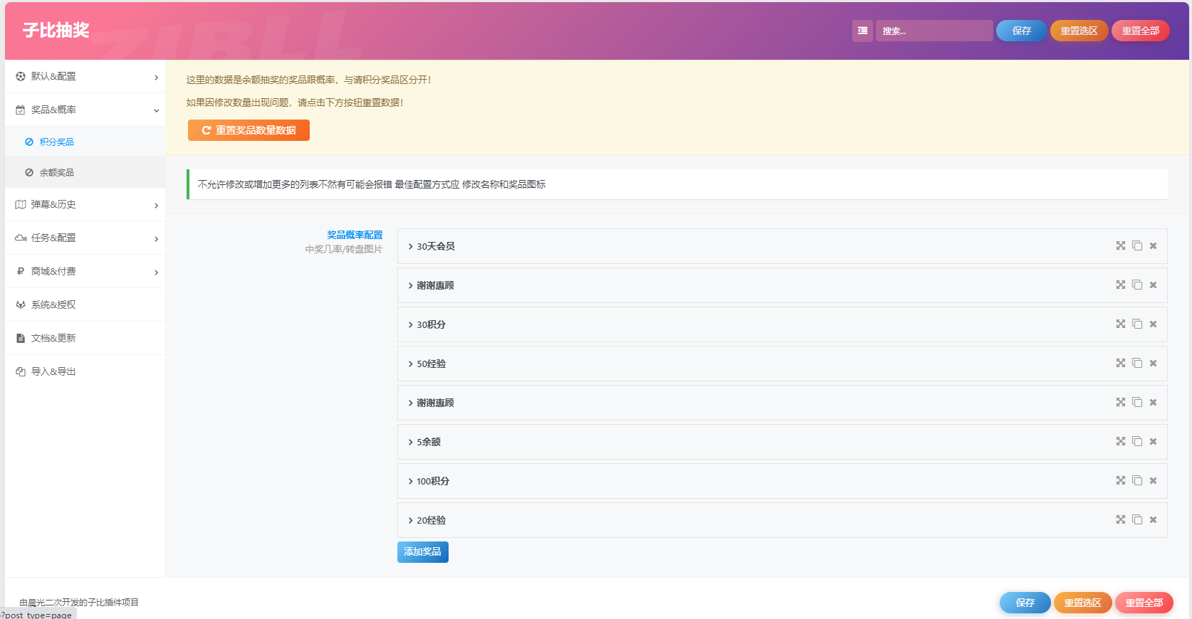 该插件经过本站7.6版本子比主题配套测试,抽奖系统完美正常使用