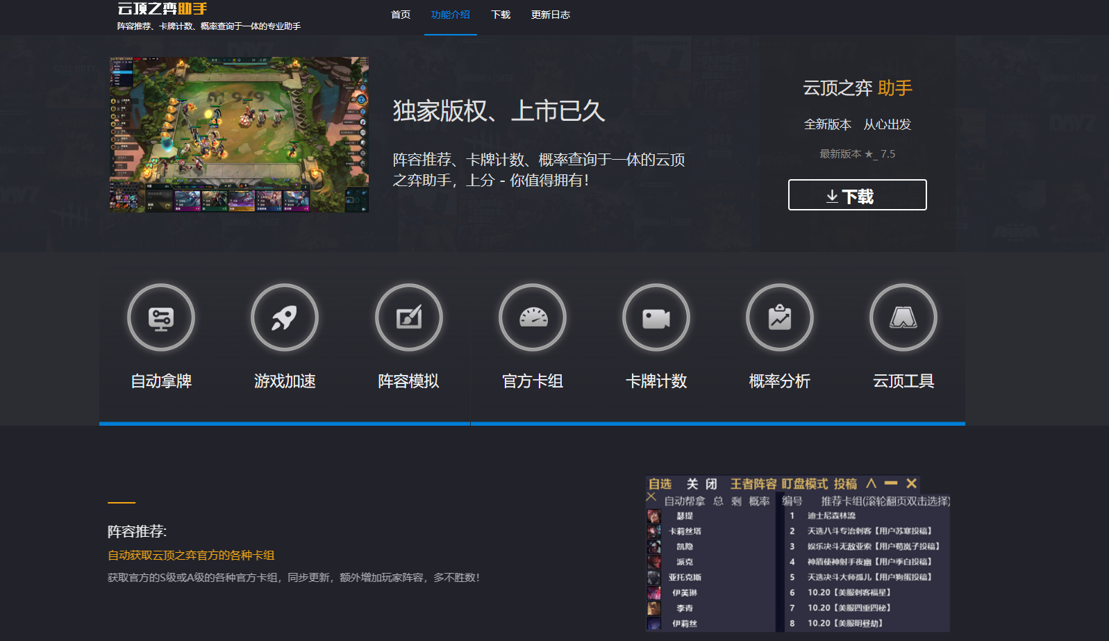 云顶之弈游戏助手官网源码-游戏助手官网html模板
