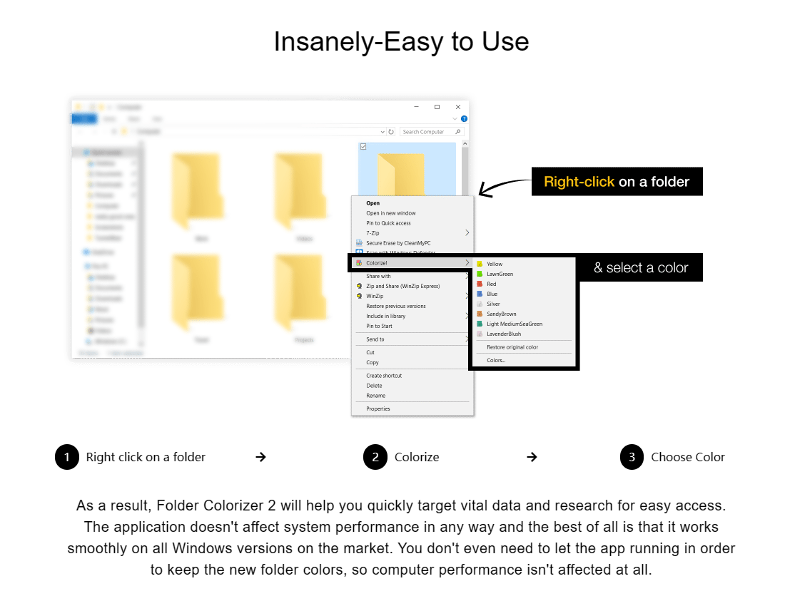 软件简介 非常好用的文件夹图标美化工具。它可以随意改变系统文件夹的外观颜色,红橙黄绿青蓝紫随你选择,也可以将颜色定义文件夹内容的分类,比如重要的工作文档为红色,休闲娱乐的为蓝色等等。 资源下载此资源仅限注册用户下载,请先登录客服QQ:305582964 联系邮箱:305582964@qq.com