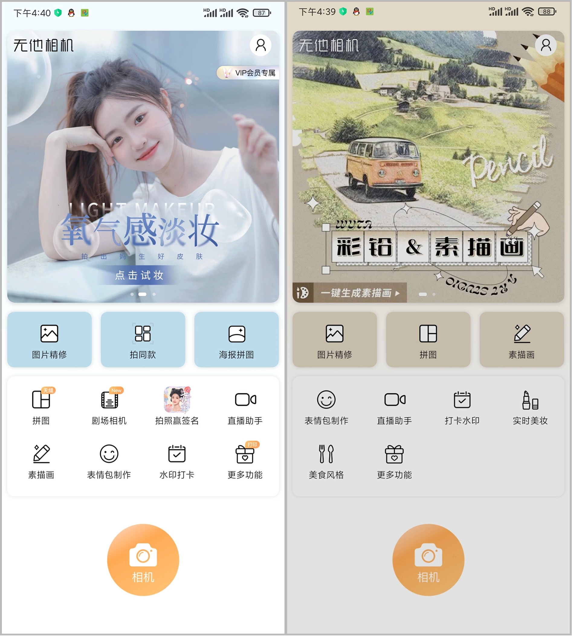 一款专注自然、细腻的专业摄像软件,软件凭借着优秀的美颜功能以及自动AI处理,广受用户的热爱,用户通过这款软件完全不需要后期的编辑就可以让你拍出可爱好看的视频或者是照片。可随意调整五官,带给您惊艳的自拍效果。无他相机还支持虚拟摄像头,让手机当做电脑摄像头,实时直播画面效果也非常的好。由Lxapk大佬解锁会员功能