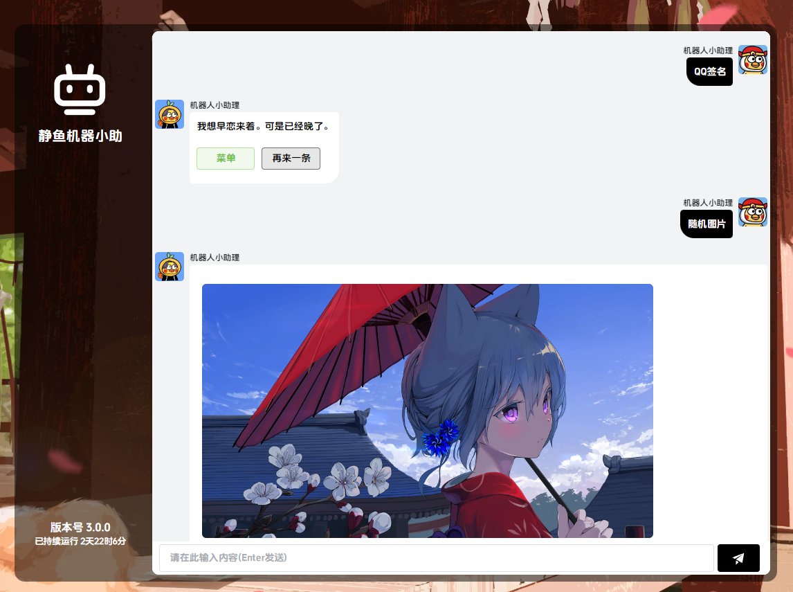 笋丁网页机器人一款可设置自动回复,默认消息,调用自定义API接口的网页机器人。此程序后端语言使用Golang,内存占用最高不超过30MB,1H1G服务器流畅运行。仅支持Linux服务器部署,不支持虚拟主机,请悉知!使用自定义api功能需要有一定的建站基础。安装教程在最下面