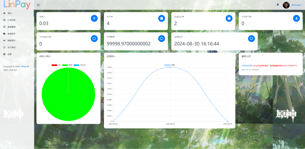 LinPay码支付是2024年8月25日上线的一款新码支付,属于第四方支付不需要支付许可证云拍照,服务集成商兼容市面所有易支付,兼容所有商城LinPay是专为个人站长打造的聚合免签系统,拥有卓越的性能和丰富的功能。它采用全新轻量化的界面UI,让您能更方便快捷地解决知识付费和运营赞助的难题