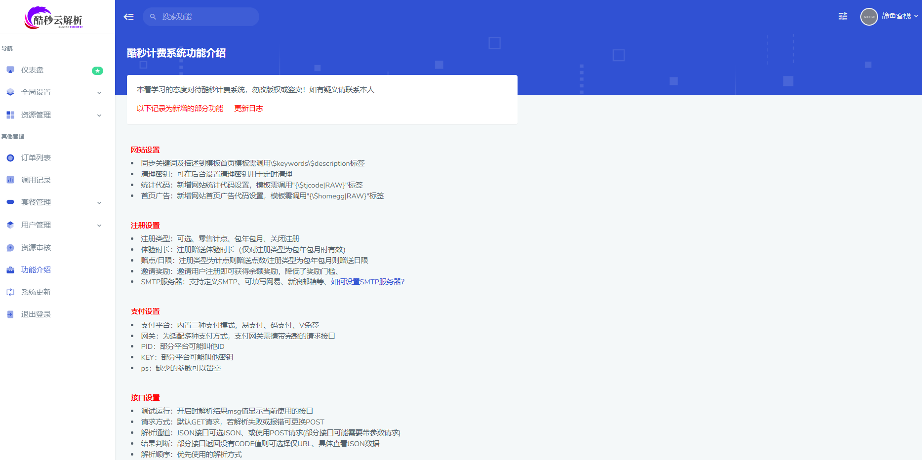 云解析4.6.1视频解析计费系统酷秒二开版,JSON一次解析计费系统源码,云海解析计费系统为广大用户所熟知,尤其在视频解析接口及切片资源方面应用广泛。先前本站分享过两套二次开发的版本,而这次的新版本由酷秒二开的版本并且进行了更进一步的优化,同时增加了多项实用功能,其解析速度与扶风解析相当。该源码在测试的过程中的确遇到了几处Bug,站长也大概的进行功能修复,源码为开源的源文件,有喜欢的同学可以自行研究。