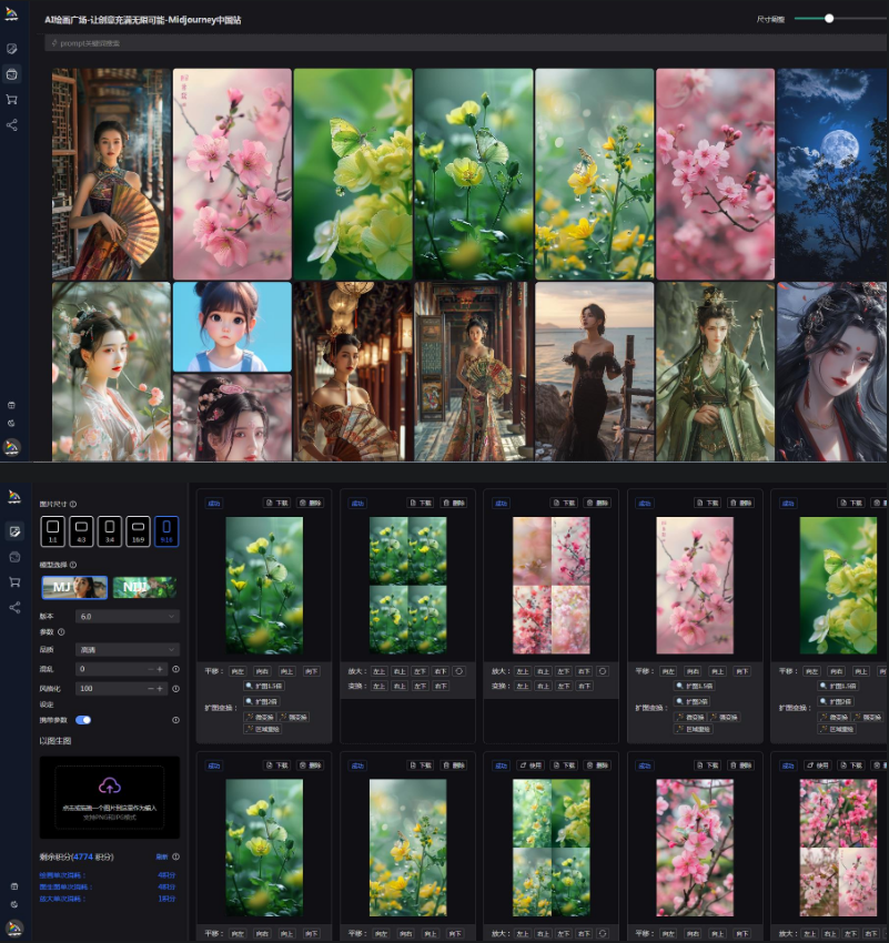 Dalle绘图支持模型绘画比例选择(方形/宽屏/垂直)。绘图页面新增区域重绘功能。