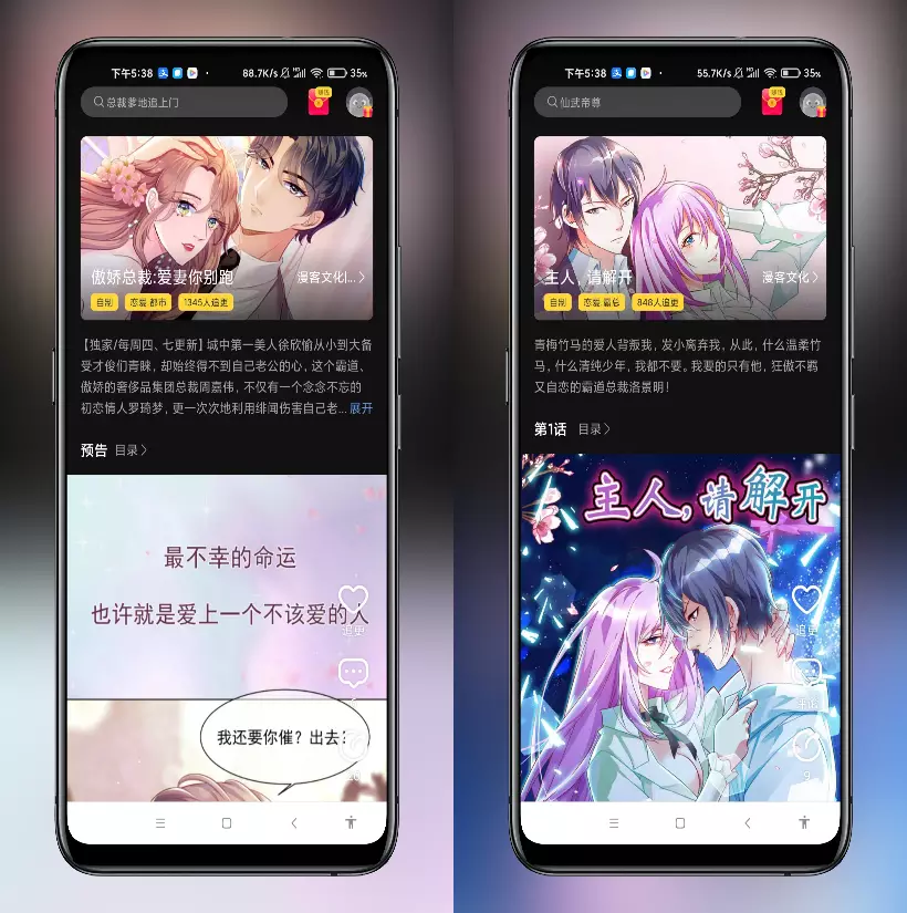 优质体验 畅游漫画世-界 横竖屏随意切换,页面大小肆意调节! 超爽的沉浸式漫画体验只为你!(~ ̄▽ ̄)